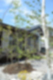 正面の植栽は6mのアオダモを主木に構成。ベニバスモモ、ヒサカキ、アセビ、ドウダンツツジetc